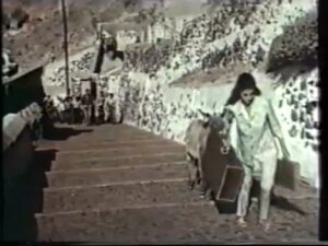 Έτσι ξεκινά το ταξίδι της ανάβασης με την Τζοάννα και το γαϊδουράκι δίπλα της προς τα Φηρά. Οι σκηνές της ανάβασης είναι υπέροχες καθώς ο φακός αποθανατίζει την θέα και το ανεβοκατέβασμα των ζώων στις σκάλες με την Τζοάννα να γονατίζει κάποια στιγμή απ’ την κούραση. Είναι η σκηνή που θα γνωρίσει τον επόμενο έρωτα της ζωής της, καθώς μαζί με άλλους τρέχει να την βοηθήσει – ένας από αυτούς που την ειρωνεύονταν. Και δεν είναι ο μόνος… Θα την ερωτευθεί κι άλλος.