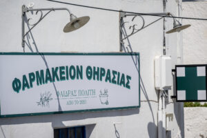 Έτσι αποφασίσαμε να δημιουργήσουμε το φαρμακείο στη Θηρασιά. Υπήρχε ανάγκη. Οι άνθρωποι είναι ηλικιωμένοι και μετακινούνται δύσκολα. Πολλές φορές ο καιρός αγριεύει και το νησί αποκλείεται.