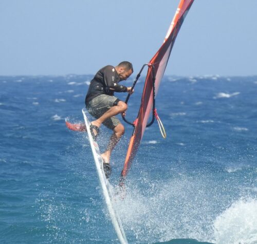 Since the 1980s, Santorini has slowly but steadily evolved into a prime destination for water sports, thanks to its volcanic landscape, crystal-clear waters, and strong Aegean winds. Nektarios Makris, an experienced windsurfing.